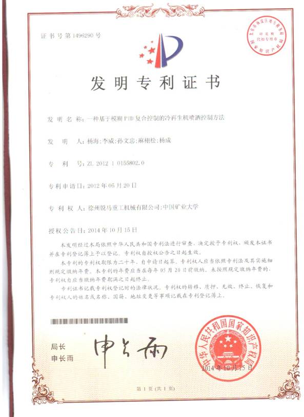 The newly-approved patent name is: a spray regeneration control method for cold regenerator based on Mohu PID compound control. This invention patent is jointly developed by our company and China University of Mining and Technology, and the patent right is shared by both parties. This patent has already been applied to the pavement Road cold recycler machine produced by our company. The precision and stability of the additive spray control system of the pavement Road cold recycler machine has a decisive influence on the quality of Road cold recycler construction, and it is deeply felt for those who are experienced in the pavement Road cold recycler industry. The water spray system of our Road cold recycler machine has the characteristics of accurate measurement and stable flow, and is well received by customers. This is the result of our company's persistence in technological innovation and mastery of core technologies. Thanks to continuous technological innovation, our cold recycler products are at the leading domestic level in terms of technology, and product sales have also reached record highs, which are also leading domestically. It is Xuzhou Rema Heavy Industry's consistent tenet to adhere to technological innovation and maintain product performance advantages. To compete with imported machinery and promote the healthy development of domestic road Road cold recycler is the unchanged goal of Xuzhou Rema Heavy Industry.