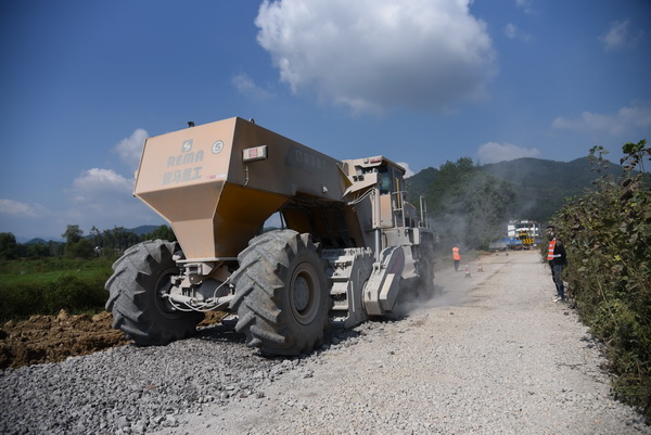 Jiangxi News Client (Jiangxi Daily reporter Zou Haibin) On October 13, the reporter came to the construction site of the Jinrui section of the Yichun S223 reconstruction project, and saw a new type of concrete cement crusher crushing the old cement pavement in situ and simultaneously processing it. As the roadbed cushion material, after being compacted by a roller, the asphalt road cushion is directly formed. This is the first time that Yichun "white to black" has adopted cement pavement in-situ recycling technology.